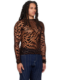 Semi-sheer stretch nylon mesh turtleneck. · Graphic pattern flocked throughout · Zip closure at collar Supplier color: Black 77% polyamide, 23% elastane. Made in Portugal 231345M205003