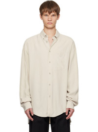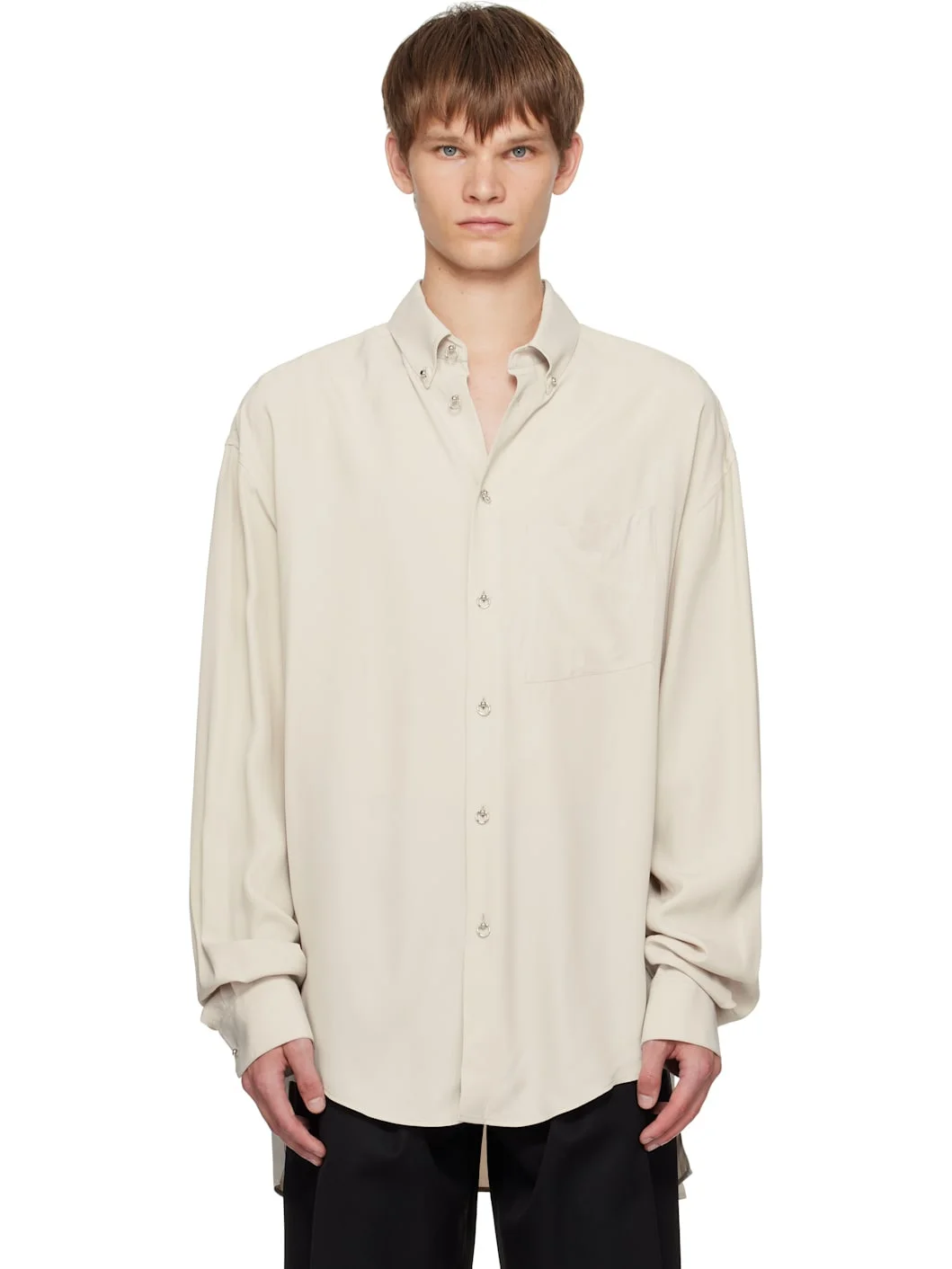 Plain-woven viscose shirt. · Spread collar · Graphic hardware at button closure · Patch pocket at chest · Droptail hem · Buttoned barrel cuffs · Pleats at back yoke Supplier color: Sand 100% viscose. Made in Portugal 252345M192000