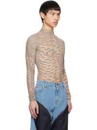 Semi-sheer stretch nylon mesh turtleneck. · Graphic pattern flocked throughout · Zip closure at shoulder Supplier color: Tan/Graphite 77% polyamide, 23% elastane. Made in Portugal 231345M205005
