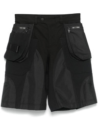 panelled-design cargo shorts Highlights - Black - Cotton - Twill weave - Panelled design - Front button and zip fastening - Belt loops - Multiple cargo pockets - Side zip-fastening pocket - Logo patch to the rear - Two rear patch pockets - Knee-length Imported Composition Polyester 100%, Recycled Polyester 100%, Cotton 100% SIZE & FIT Model measurements Height 6 ft 2 in(1.87 m) Bust/Chest 37.79 in(96 cm) Hips 38.18 in(97 cm) Waist 31.49 in(80 cm) FittingInformation Designed with a wide leg, offering a loose and roomy fit Made from a midweight non-stretch fabric