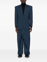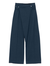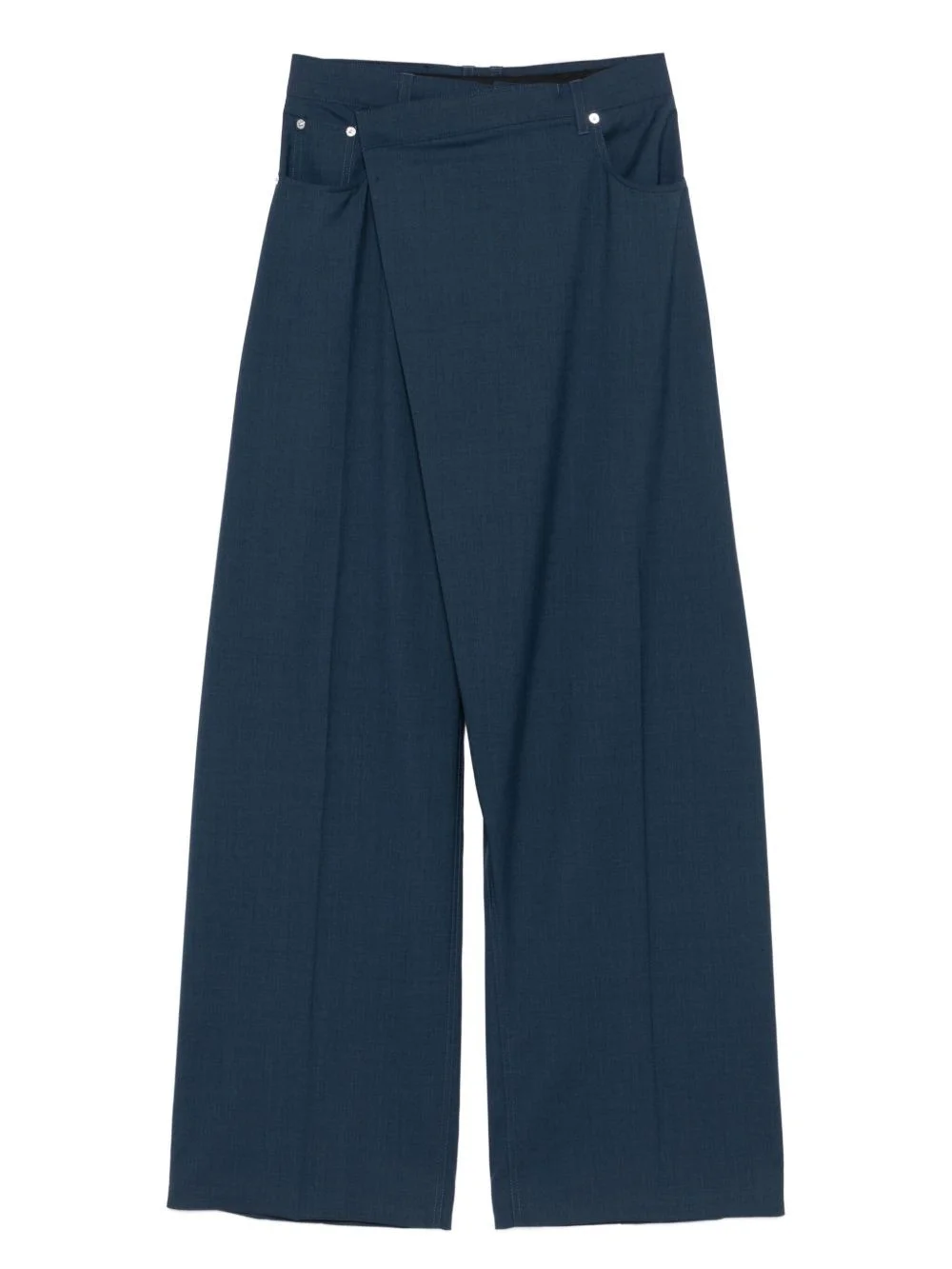 wrap pocketed wide-leg trousers Highlights - Dark blue - Wrap-around design - Side pockets - Wide leg - Button detailing Imported Composition Lining: Cotton 100% Outer: Virgin Wool 100% SIZE & FIT Model measurements Height 6 ft 0 in(1.84 m) Bust/Chest 37.79 in(96 cm) Hips 37 in(94 cm) Waist 31.49 in(80 cm) Washing instructions Dry Clean Only