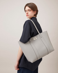 The perfect partner for modern lifestyles, the Bayswater Tote is spacious enough to fit everything from an iPad to a pair of shoes. This classic style closes with our signature Postman’s Lock and features a luxurious suede lining. A removable internal pocket is ideal for safely storing the essentials. Details A leather tote with a removable pouch. - Postman's Lock closure - New Silver hardware finish - Two top leather handles - Main internal compartment - Internal removable pouch - Foil embossed Mulberry signature on removable pouch - Suede interior lining Height 11¾" Width 19¼" Depth 6" Handle drop 10¼" Weight ½kg, approximately Material Small Classic Grain A soft cow leather with a small printed grain effect. The leather is lightly finished to protect the grain surface. This product's code is HH4589-205C919