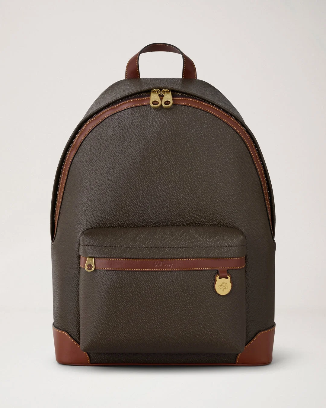 The Mulberry Heritage Zipped Backpack Eco Small delivers timeless British craftsmanship with sustainable luxury materials and practical everyday functionality. Crafted from premium eco-friendly leather in sophisticated olive green with cognac brown leather trim, featuring gold-tone hardware throughout. The compact silhouette and heritage-inspired design combine Mulberry's iconic aesthetic with modern environmental consciousness.