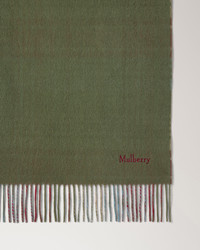 This double-faced merino wool scarf keeps you warm and stylish. Made in the UK and featuring fringed ends, plus an embroidered Mulberry signature. Details A large reversible check scarf. - Double-faced merino wool - Embroidered Mulberry signature - Fringed ends - Made in the UK Length 76¾" Width 19¾" Material Merino Wool 100% Merino Wool This product's code is VS4858-136Q735