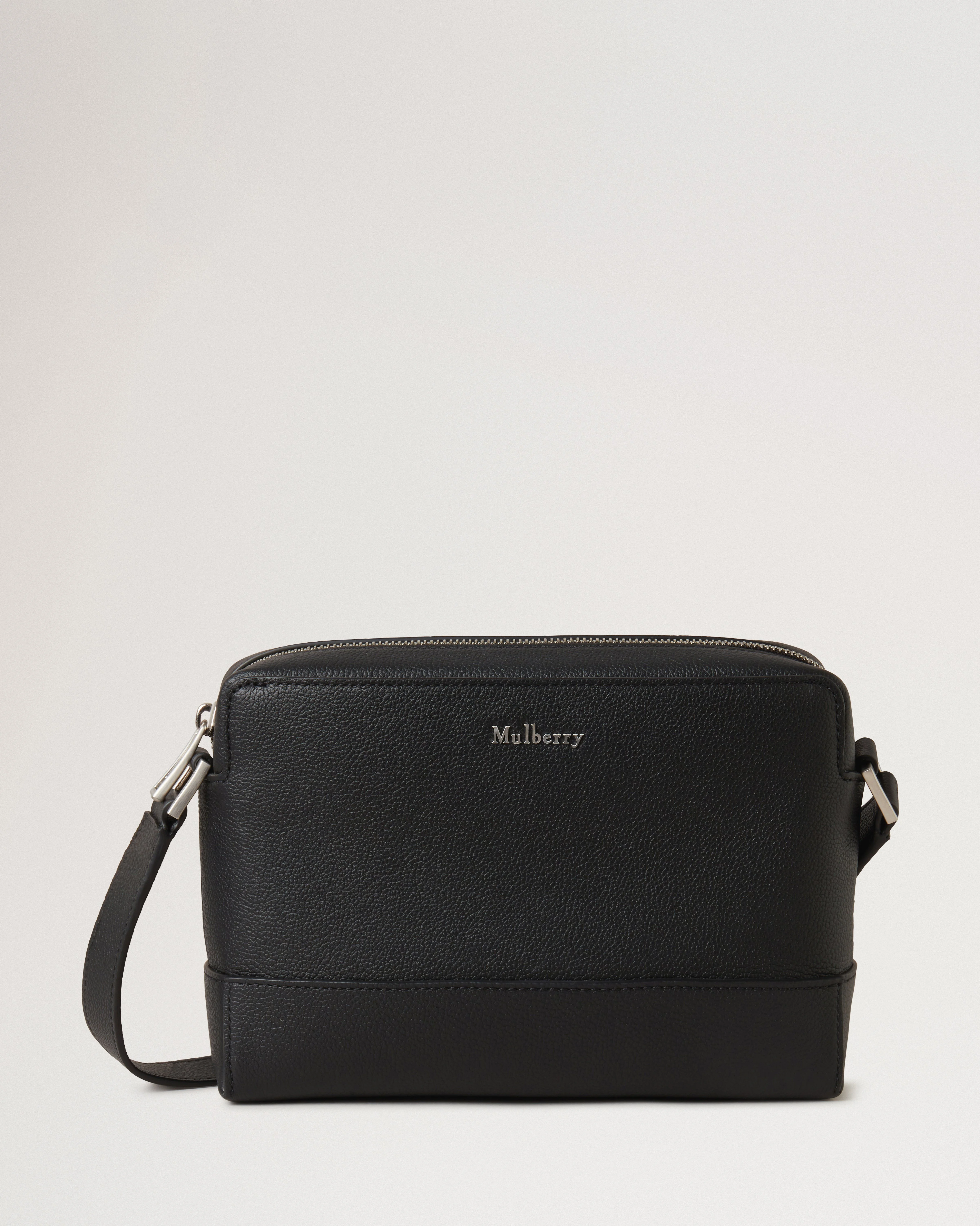 Functional, fresh, forever – our durably designed Small Farringdon Messenger features a sleek squared-off profile. Big enough to fit the essentials, this style is ideal for the everyday. Details A sleek, small messenger bag. - Adjustable leather shoulder strap - One main compartment - Internal slip pocket - Zipped closure - Brushed silver hardware finish - Mulberry metal lettering - Large external slip pocket with magnetised closure - Herringbone lining Height 6" Width 8¾" Depth 2½" Material Small Pebble Grain A soft and subtle calf leather with an assisted Pebbled Grain effect. This product's code is HH9506-645A100