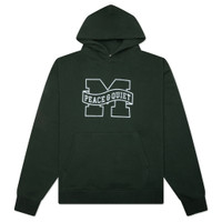 Museum of Peace and Quiet embraces minimalist design with the Banner Hoodie. Crafted from cotton, this hoodie is cut to have a regular fit and ensures comfort and durability. It features a fixed hood, kangaroo pocket, and ribbed trims, making it a versatile addition to any wardrobe. Screen-printed branding completes the look. MOPQ WNTR25 12 FORE - 100% Cotton - Regular fit - Fixed hood - Screen-printed graphics - Kangaroo pocket - Ribbed trims - Style No: MOPQ-WNTR25-12-FOR