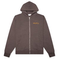Museum of Peace and Quiet embraces minimalist design with the Castelli Zip-Up Hoodie. Crafted from cotton, this hoodie is cut to have a regular fit and ensures comfort and durability. It features a full-zip closure, fixed hood, kangaroo pocket, and ribbed trims, making it a versatile addition to any wardrobe. Screen-printed branding completes the look. MOPQ WNTR25 13 BROW - 100% Cotton - Regular fit - Fixed hood - Full-zip closure - Screen-printed graphics - Kangaroo pocket - Ribbed trims - Style No: MOPQ-WNTR25-13-BRO