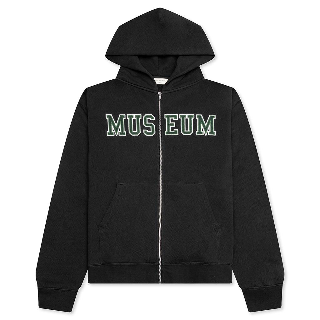 Museum of Peace & Quiet introduces the Museum Zip-Up Hoodie. This hoodie is made of 100% cotton and has a full zipper closure and a hooded neckline with ribbed trims. Embroidered 'Museum' graphics at the front add further dimension, while the front pockets round out the look. - 100% Cotton - Hooded collar - Ribbed trims - Zipper closure - Embroidered graphics - Front pockets - Style No: MOPQ-SS25-16-BLA