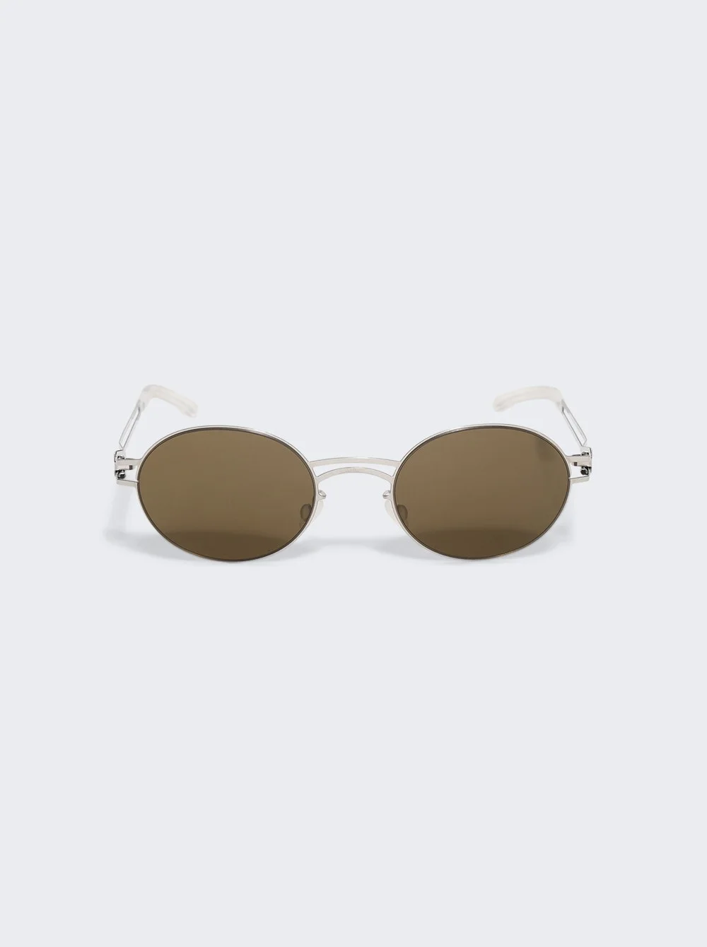 Details - Oval sunglasses crafted from circular stainless steel - Shiny silver frame and solid brown lenses - Patented spiral hinge - 100% UVA/UVB protection - Anti-reflective inner coating - Lens width: 51mm; Bridge width: 22mm; Temple length: 145mm - Material: Stainless Steel Vendor Color Code: Brand Style: 10088816 Designer/Brand: MYKITA