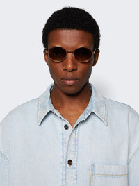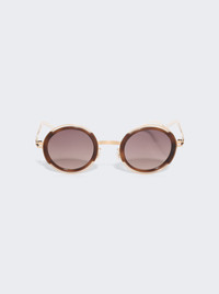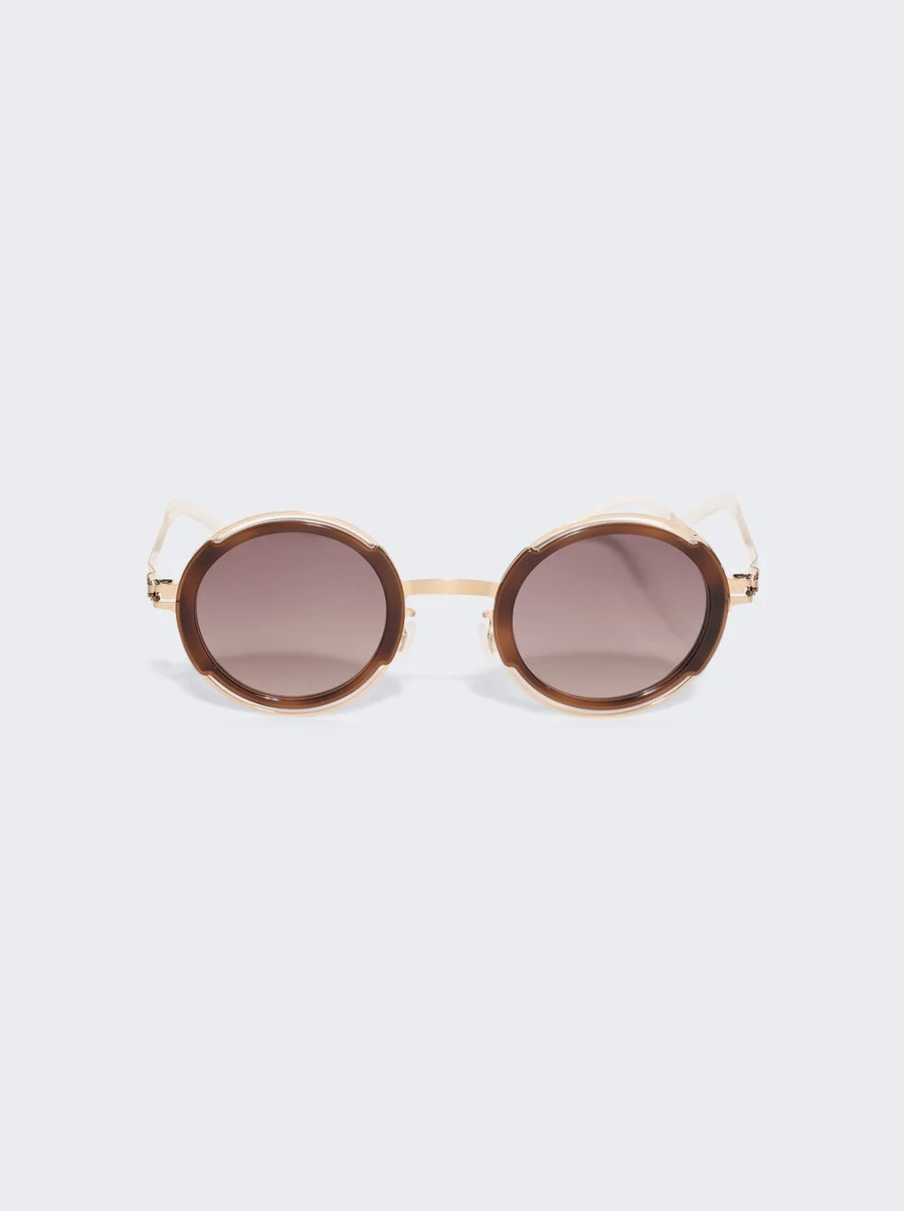 Details - Responsibly designed sunglasses crafted from circular materials. - Rims fitted with acetate rings - Patented spiral hinge - Individually adjustable - Frame: Champagne Gold and Zanzibar - Lens: Cedar brown gradient with 100% protection against UVA/UVB rays and an anti-reflective inner coating - Handmade in Berlin. - Material: ISCC PLUS certified Acetate Renew, circular stainless steel Size Information: Vendor Color Code: Brand Style: 10085850 Designer/Brand: MYKITA