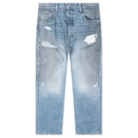The Dirty Wash Baggy Jeans from Nahmias is constructed from 100% cotton and designed to have a relaxed, baggy silhouette. Intentional fading, distressing, and a dirty wash treatment give the worn-in appeal. A classic 5-pocket construction, button closure, and branded leather patch complete the look. - 100% Cotton - Baggy fit - Intentional fading - Dirty wash treatment - 5-pocket construction - Button closure - Distressed details - Branded leather patch - Style No: D5-P43-425