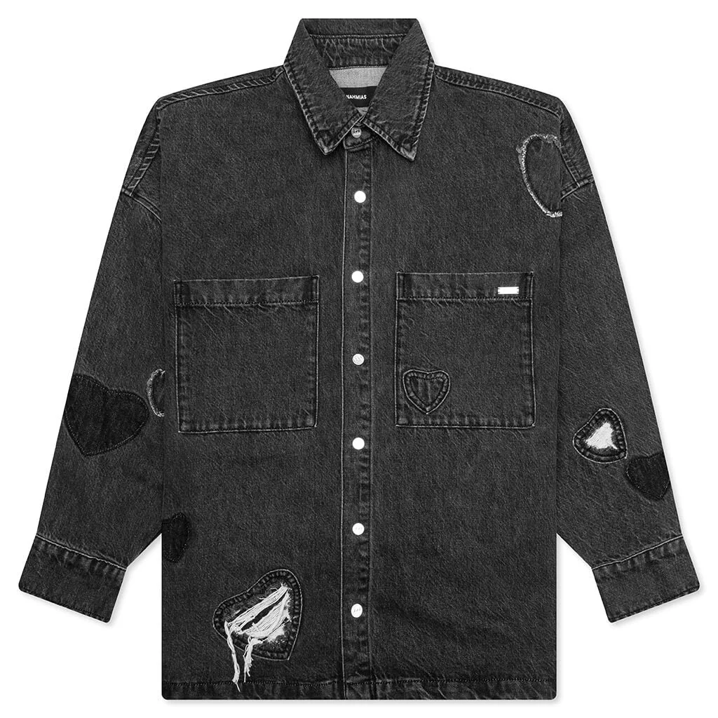 HEART PATCHWORK L/S SHIRT - HEART CHARCOAL WASH