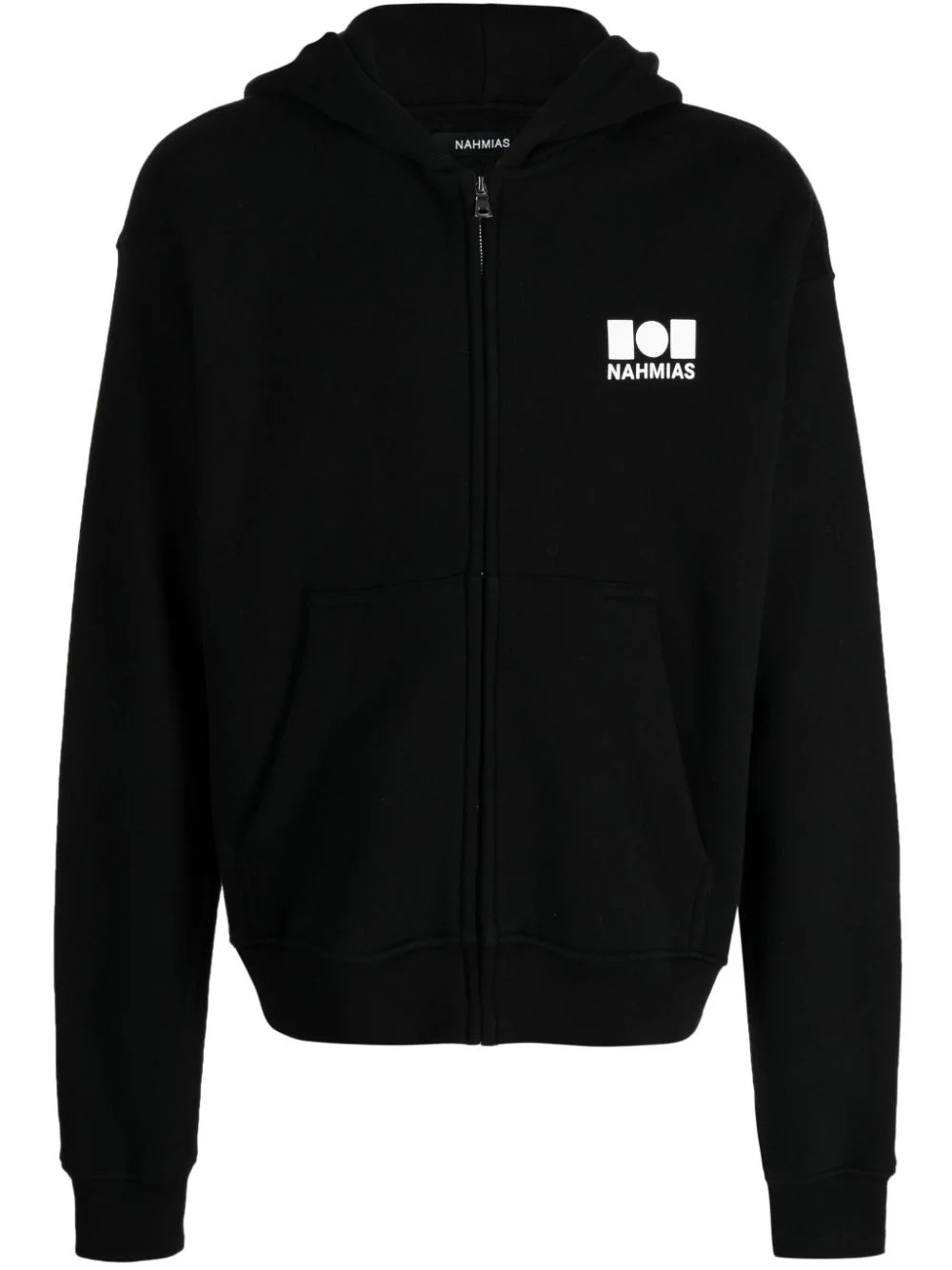 logo-print cotton hoodie Highlights - Black/white - Cotton - Logo print at the chest and rear - Classic hood - Front zip fastening - Long sleeves - Elasticated cuffs and hem - Straight hem Made in United States Composition Cotton 100% Washing instructions Machine Wash