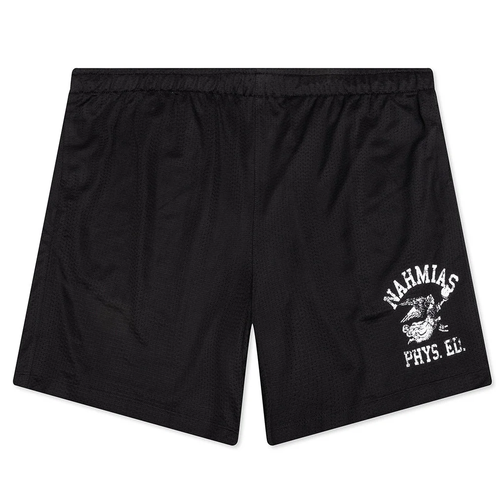 The Mesh PE Shorts from Nahmias are an essential piece in any rotation. Composed of polyester, these comfortable shorts feature a screen-printed Phys. Ed. motif at the thigh. The elasticated waistband with an interior drawstring adds function and a custom fit, completing the look. - 100% Polyester - Made in Los Angeles - Mesh construction - Screen-printed graphics - Elastic waistband - Interior drawstring - Style No: W79-R14F16-001