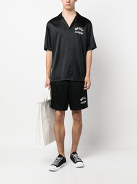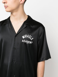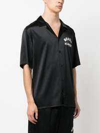 graphic-print short-sleeve shirt Highlights - Black - Silk blend - Graphic print at the chest - Classic collar - Front button fastening - Short sleeves - Straight hem Imported Composition Silk 95%, Elastane 5% SIZE & FIT Model measurements Height 6 ft 1 in(1.86 m) Bust/Chest 36.61 in(93 cm) Hips 37 in(94 cm) Waist 28.74 in(73 cm) FittingInformation Designed to be unstructured, offering a loose fit throughout Made from a lightweight stretch fabric, this piece offers elasticity and flexibility when worn This piece fits true to size – take your usual size