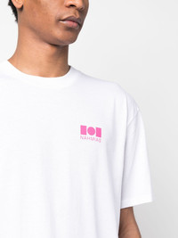 logo-print cotton T-shirt Highlights - White - Logo print at the chest - Crew neck - Slogan print to the rear - Short sleeves - Straight hem Made in United States Composition Cotton 100% SIZE & FIT Model measurements Height 6 ft 2 in(1.87 m) Bust/Chest 37 in(94 cm) Hips 33.85 in(86 cm) Waist 27.95 in(71 cm) FittingInformation Designed to be unstructured, offering a loose fit throughout Made from a midweight non-stretch fabric, this piece offers minimal elasticity when worn This piece fits true to size – take your usual size