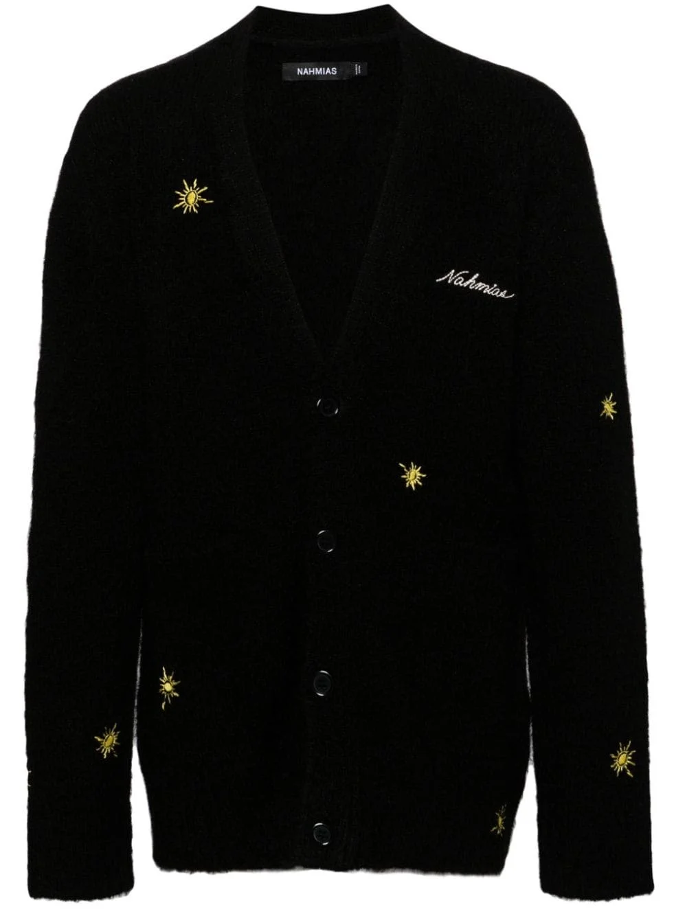 Sunshine logo-embroidered cardigan Highlights - Black/yellow - Brushed effect - All-over sun embroidery - Embroidered logo at the chest - V-neck - Front button fastening - Long sleeves - Two front patch pockets - Straight hem Imported Composition Acrylic 53%, Mohair 30%, Nylon 15%, Spandex/Elastane 2% Washing instructions Hand Wash