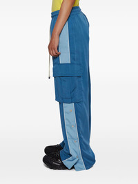track cargo pants Highlights - Ocean blue/light blue - Contrasting side panel detail - Elasticated drawstring waistband - Two side cargo pockets - Rear welt pocket - Side press-stud fastening Imported Composition Cupro 60%, Rayon 40% Washing instructions Read Manufacturer Guidelines