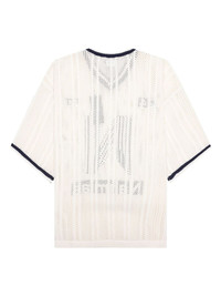 V-neck knitted T-shirt Highlights - Off-white - Open knit - Navy blue v-neck trim - Intarsia logo - Short sleeves - Number 24 detail Imported Composition Cotton 100% Washing instructions Dry Clean Only