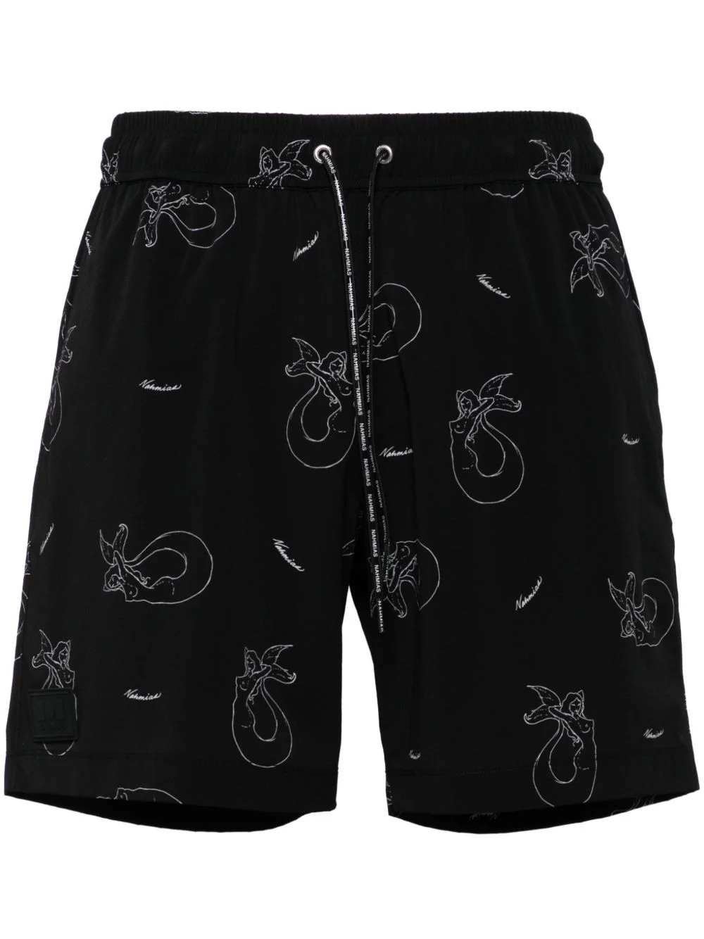 Waistband Swim Shorts Highlights - Black - Recycled polyamide blend - Logo-print drawstring - Mermaid print - Elasticated waistband - Two side inset pockets Imported Composition Recycled Polyamide 78%, Spandex/Elastane 22% SIZE & FIT Model measurements Height 6 ft 2 in(1.87 m) Bust/Chest 33.07 in(84 cm) Hips 35.43 in(90 cm) Waist 26.77 in(68 cm) FittingInformation Designed for a straight-leg fit, offering an unrestricted and comfortable fit over the leg Adjust this piece’s waistband to your preference using the drawstring Made from a midweight non-stretch fabric This piece fits true to size – take your usual size Washing instructions Machine Wash