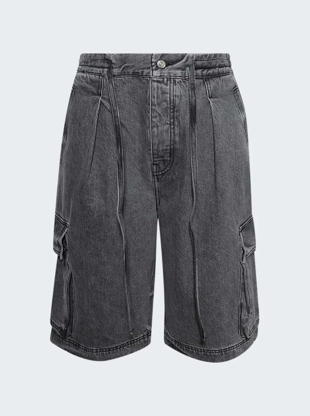 Washed Pleated Cargo Shorts Grey Wash