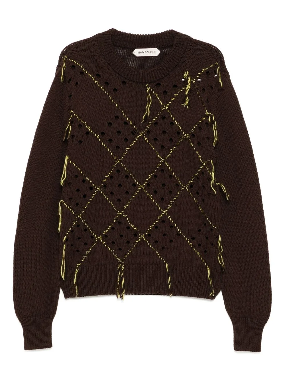 argyle-intarsia jumper Highlights - Chocolate brown - Crew neck - Long sleeves - Ribbed cuffs and hem Imported Composition Virgin Wool 100%