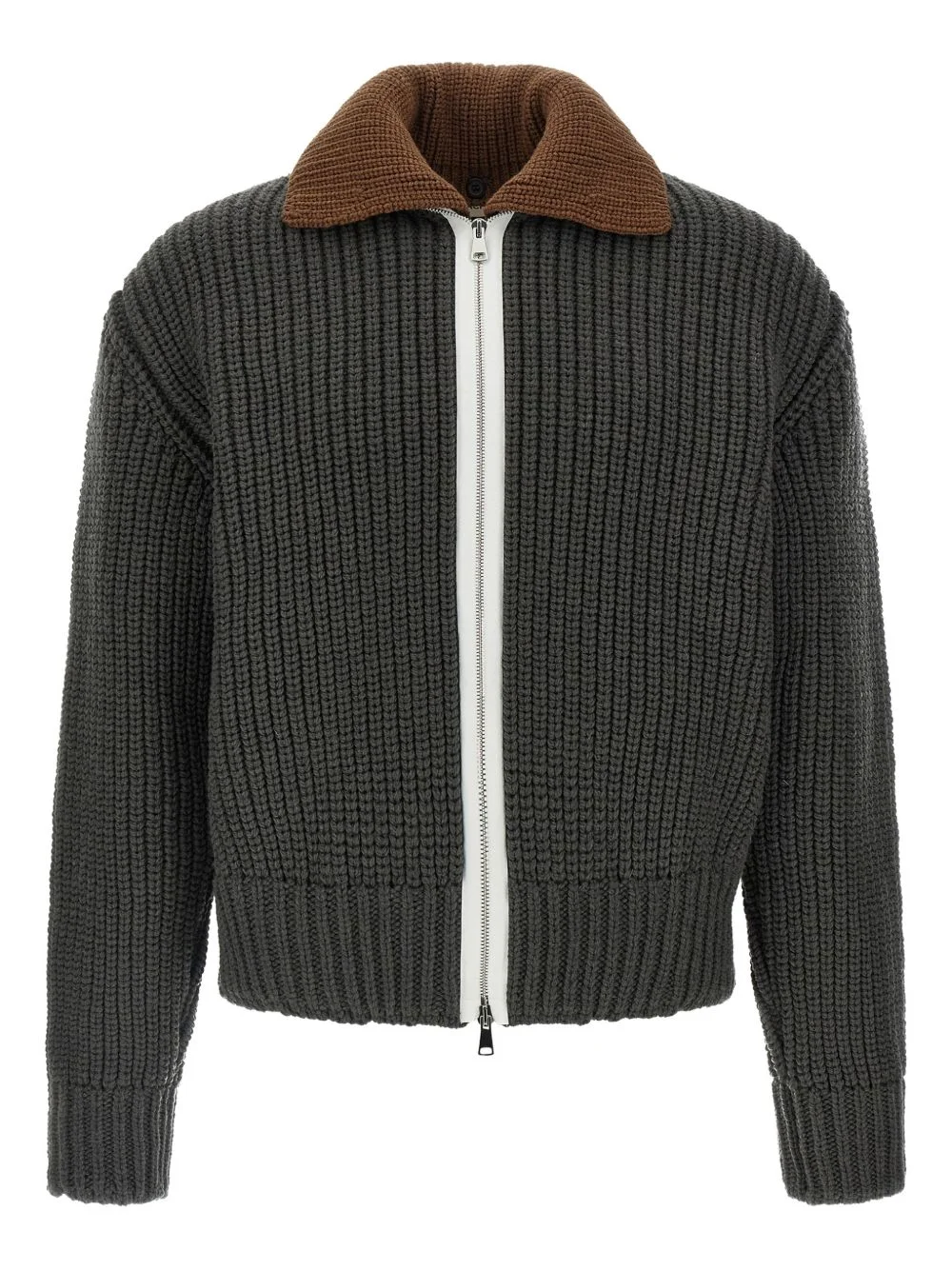 Evan zip-up cardigan Highlights - Grey - Removable collar - Front zip closure - Ribbed cuffs Imported Composition Virgin Wool 100% Washing instructions Read Manufacturer Guidelines