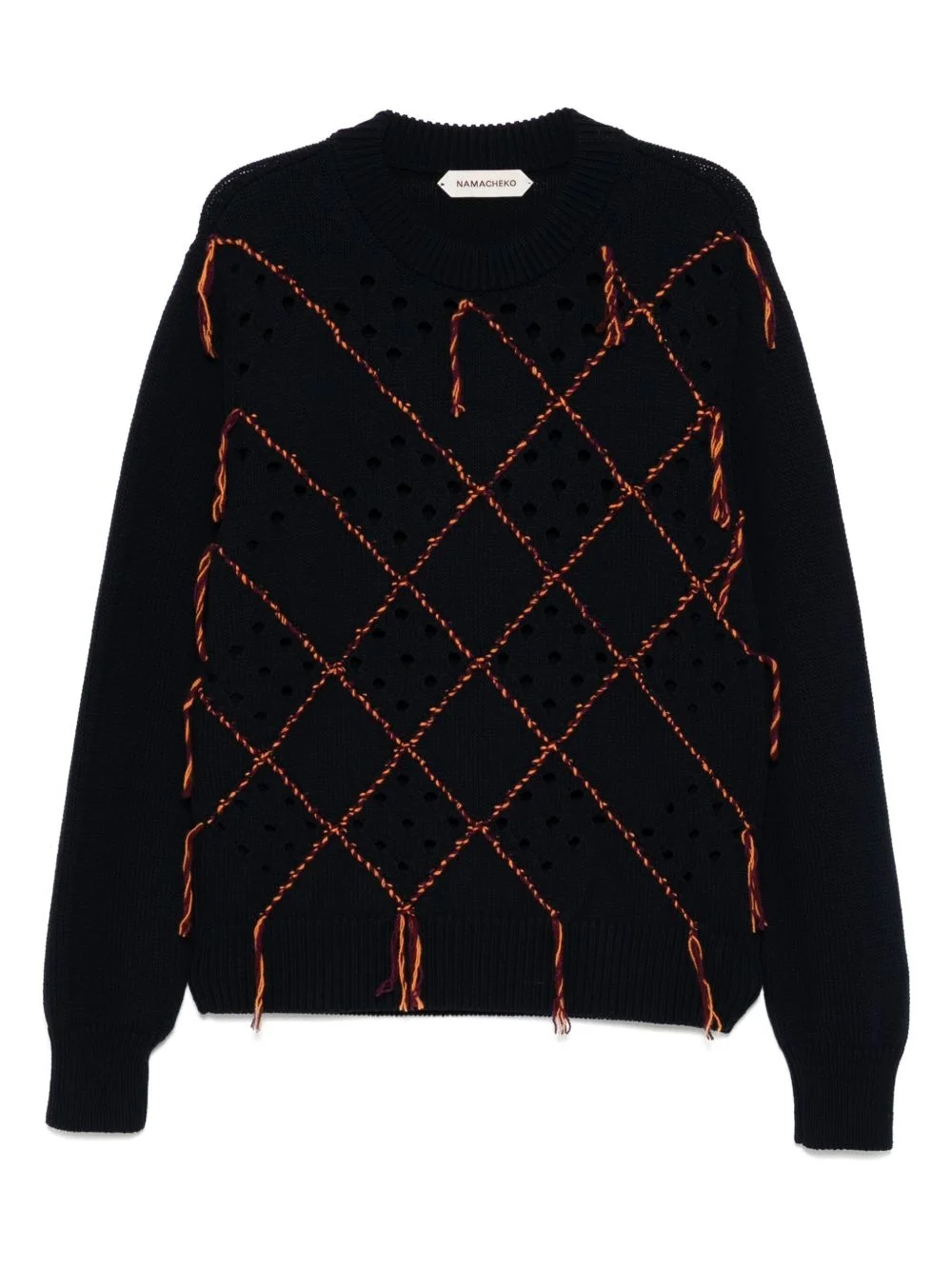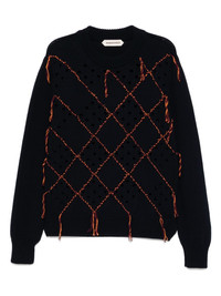 intarsia quilt crew-neck jumper Highlights - Navy blue - Crew neck - Ribbed cuffs and hem - Cut-out detailing Imported Composition Virgin Wool 100%