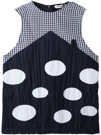 Musi sleeveless top Highlights - Navy blue - Cotton blend/silk - Pleat detailing - Polka dot print - Check print - Round neck - Sleeveless - Rear zip fastening - Straight hem Imported Composition Polyurethane 100%, Silk 100%, Cotton 77%, Polyester 23%