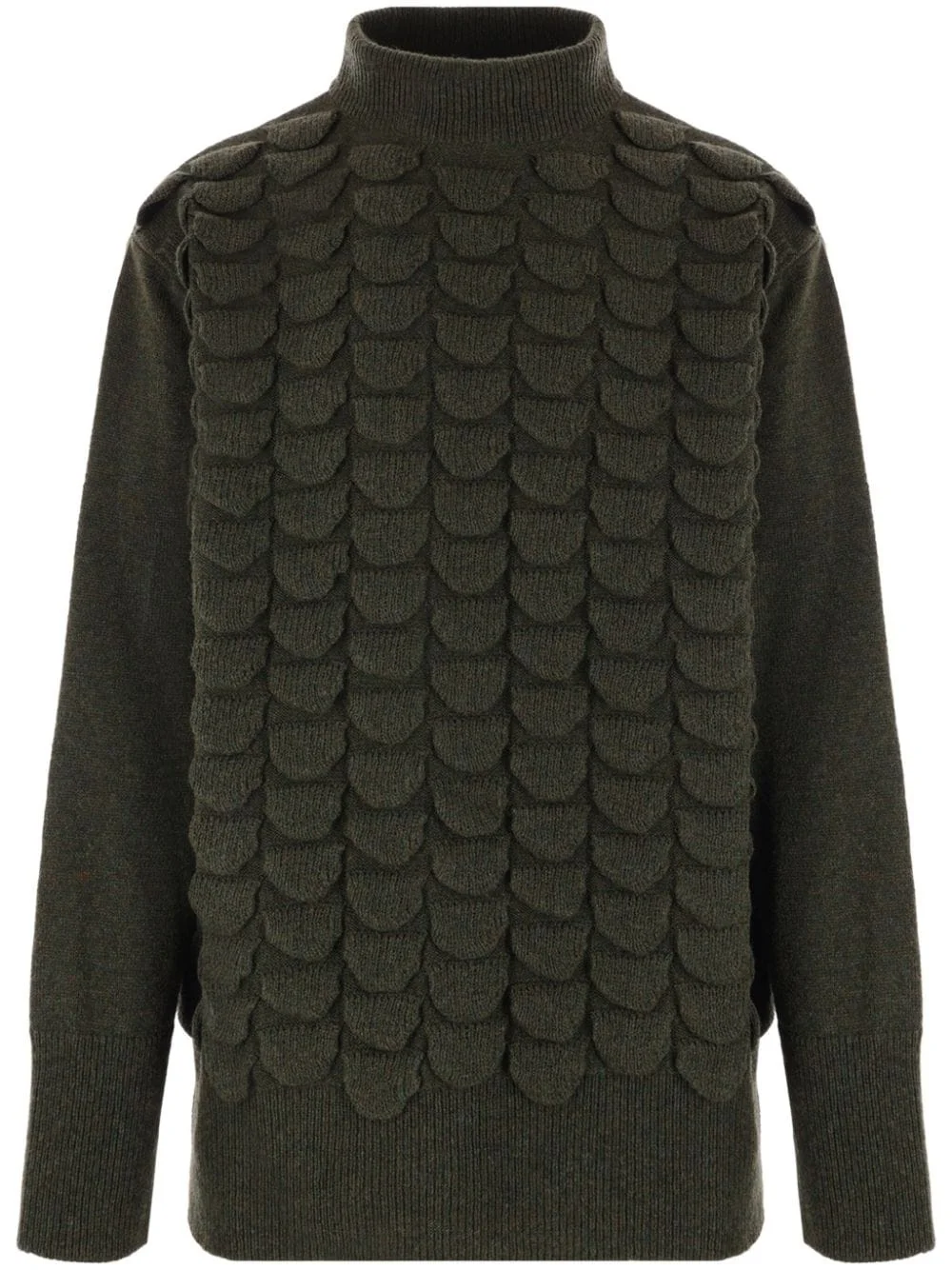 virgin wool sweater Highlights - Olive green - Virgin wool - Knitted construction - High neck - 3d detailing - Long sleeves - Ribbed cuffs and hem Imported Composition Virgin Wool 100%