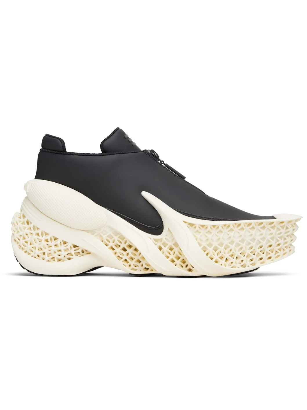Low-top buffed faux-leather sneakers. · Zip closure at vamp · Logo bonded at padded tongue · Padded collar · Logo embossed at heel counter · Mesh lining · 3D-printed sculptural rubber platform midsole · Treaded recycled rubber sole · Platform: H2.5" Supplier color: Euphoric black Upper: synthetic. Sole: rubber. Made in Taiwan, China 252467M237000