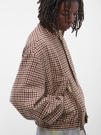 Featuring: • Oversized boxy fit • Harrington jacket design • Plaid check pattern • Stand collar and button fastening • Concealed placket closure • Dropped shoulders • Long sleeves • Zip pockets and extended detailing • Elasticated hem • Lined • Made in China • Main: 100% Wool | Lining: 100% Polyester • Standard sizing Model is 6’2” wearing size M. Shoulders: 19” Chest: 38” Waist: 28”