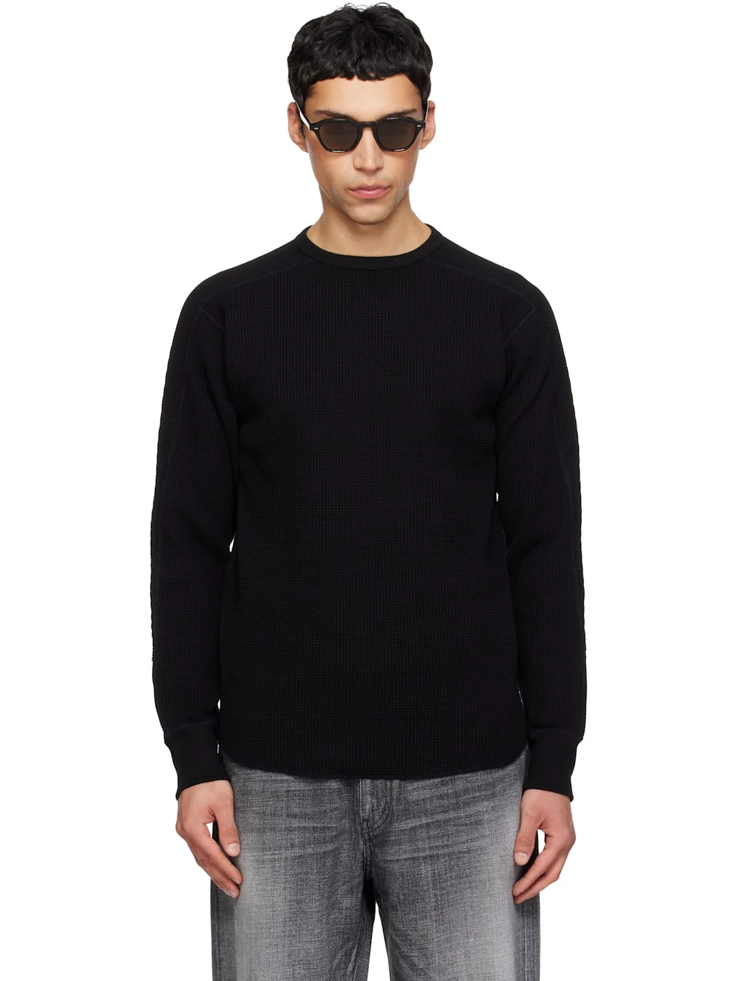 Waffle-knit cotton-blend sweatshirt. · Rib-knit crewneck and cuffs · Curved hem · Saddle shoulders Supplier color: Black 70% cotton, 30% polyester. Made in Japan 261467M213006