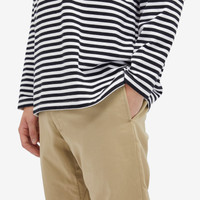 The Nanamica chino trousers reflect the brand’s pristine tailoring and refined style. Inspired by US Army chinos from the 1950s, it delivers a polished and timeless design with a straight leg fit. Crafted in Japan from a premium cotton blend, it features a five-pocket construction and gusseted inseam for enhanced leg movement. - 65% Cotton, 35% Polyester - Straight Leg - 5-Pocket Construction - Zip Fly - Inseam Gusset