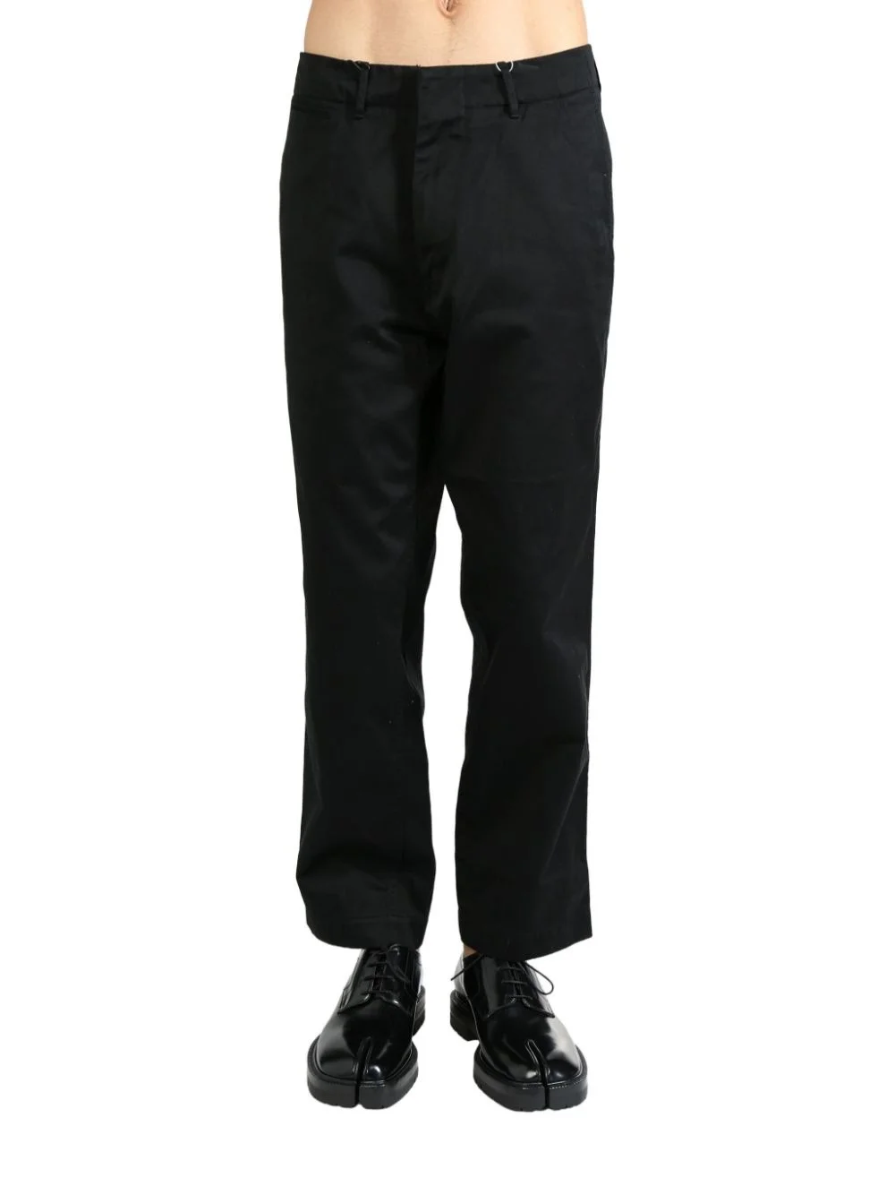 wide-leg chinos Highlights - Black - Concealed front fastening - Belt loops - Two side slit pockets - Two rear jetted pockets Imported Composition Cotton 65%, Polyester 35% Washing instructions Read Manufacturer Guidelines