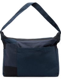 Cotton canvas and twill messenger bag. · Patch work construction · Fixed crossbody strap · Press-stud pocket and logo patch at face · Patch pocket at face and sides · Zip closure · Zip pocket and patch pockets at interior · Full twill lining · H14.25" x W17.25" x D5" Supplier color: Navy 100% cotton. Made in Viet Nam 261467M170000