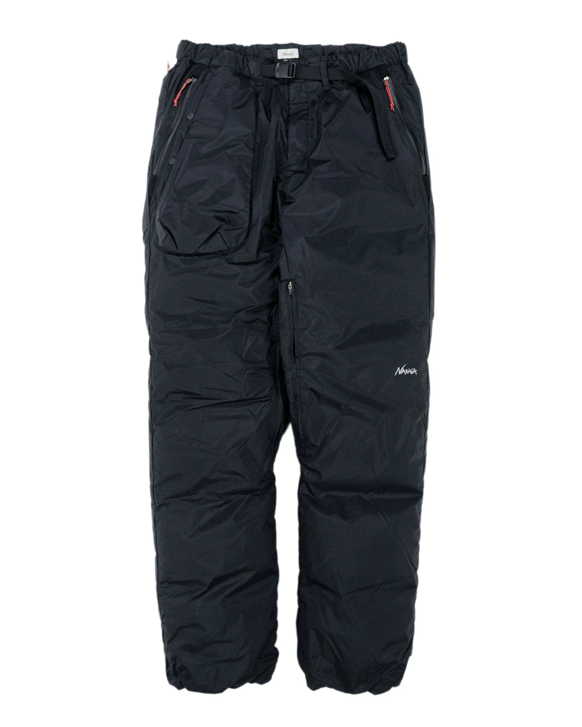 These are how you maintain heat in the winter specifically on your legs. They don't make enough things for the legs to keep them warm, but Nanga, they made down pants, aka snowpants without the top which are also known as overalls. So overalls without the over part. DETAILS - Nanga's waterproof & breathable AURORA-TEX® - Elastic waist with webbed belt - Side zip pockets - Ventilation zips at crotch - Spanish white duck down - 760 fill power, 100g down - Matte & water-repellent zips - Reflective logo at left leg - 100% nylon outer, 90% down 10% feather insulation - Model is 6’0” (183cm), 155lbs (70kg) and wearing XL