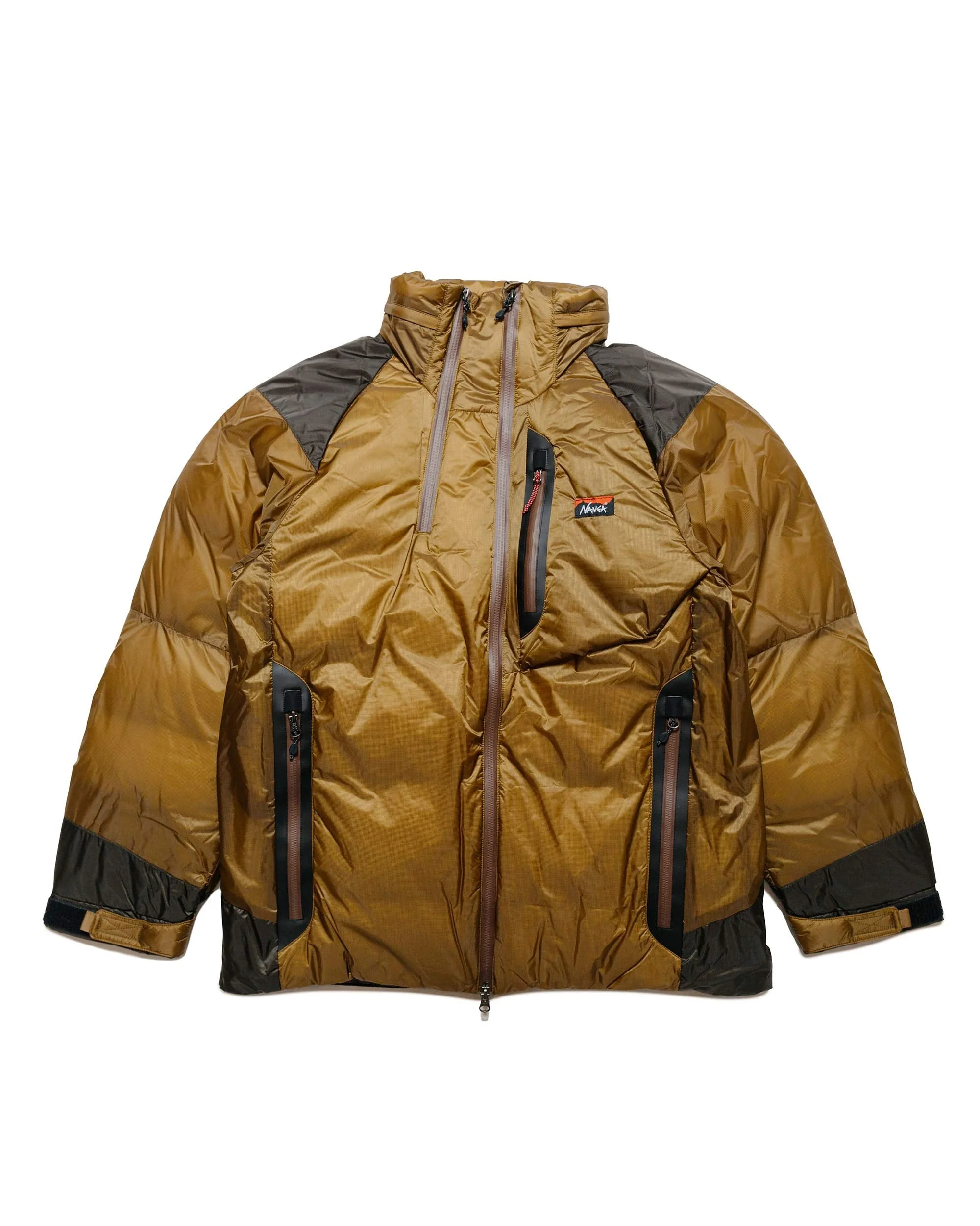 This is how you defeat a winter. Specifically a Canadian winter. You find a brand with a waterproof shell and down filled inside. And what do we get? Nanga. The Aurora down jacket that is. You wear this with a t-shirt. DETAILS - Lightweight waterproof & breathable AURORA LIGHT (15D) with 10D recycled nylon backing - Two-way zip closure - Stowaway hood - Zip chest pocket & zip vent - Zip hip pockets with brushed lining - Double layer shoulders - Adjustable nubuck Velcro strap cuffs - Drawcord hem - Polish goose down - 860 fill power, 150g down - Matte & water-repellent zips - Jersey lining at collar & cuff openings - Woven logo on left chest - 100% nylon outer, 93% down 7% feather insulation - Made in Japan - Model is 6’2” (189cm), 160lbs (73kg) and wearing XL