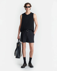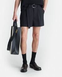 The Ollie shorts are crafted from a lightweight suiting fabric in classic black. They are easy and elegant, with a D ring-fastening belt at the waist. Worn with the Derik blazer, they encapsulate our modern, relaxed take on tailoring. Fit Intentionally designed for an oversized look. Materials and Care Shell: 55% Polyester 45% Virgin Wool Do not wash, do not bleach, do not tumble dry, iron low heat (110°), gentle dry clean any solvent except trichloroethylene. Handle with care to ensure garment lifespan. Repair or resell to support circular fashion.
