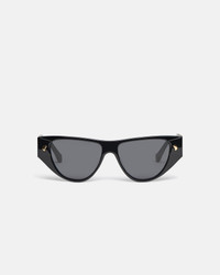 The Emme sunglasses are defined by angular cat-eye frames accented with signature gold ‘N’ motifs at the temples. In a long-standing commitment to responsible production, they are made from black bio-based plastic and housed in an upcycled alt-leather pouch. Materials and Care Frame: 100% Acetate ; Lenses 61% Fossil Fuel; Lenses 39% Plant Based Resin Use A Damp Cloth And A Mild Soap To Clean The Lenses Then Dry Them With The Soft Cleaning Cloth Sold With The Product. Do Not Use Solvents (E.G Alcohol Acetone) Or Aggressive Detergents Which May Alter The Features Of The Glasses.