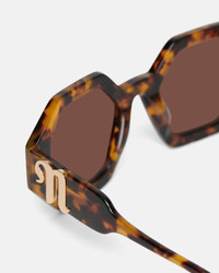 An angular hexagonal silhouette makes the Carlen sunglasses a statement-making proposition. They’re made from our glossy bio-plastic in dark amber hues and feature dark-grey lenses. Note the striking gold-tone logo at the temples. Materials and Care Frame: 100% Acetate (68% Bio-Based) Lenses: 61% Fossil Fuel 39% Plant-Based Resin Use A Damp Cloth And A Mild Soap To Clean The Lenses, Then Dry Them With The Soft Cleaning Cloth Sold With The Product. Do Not Use Solvents (E.G Alcohol, Acetone) Or Aggressive Detergents Which May Alter The Features Of The Glasses.