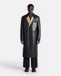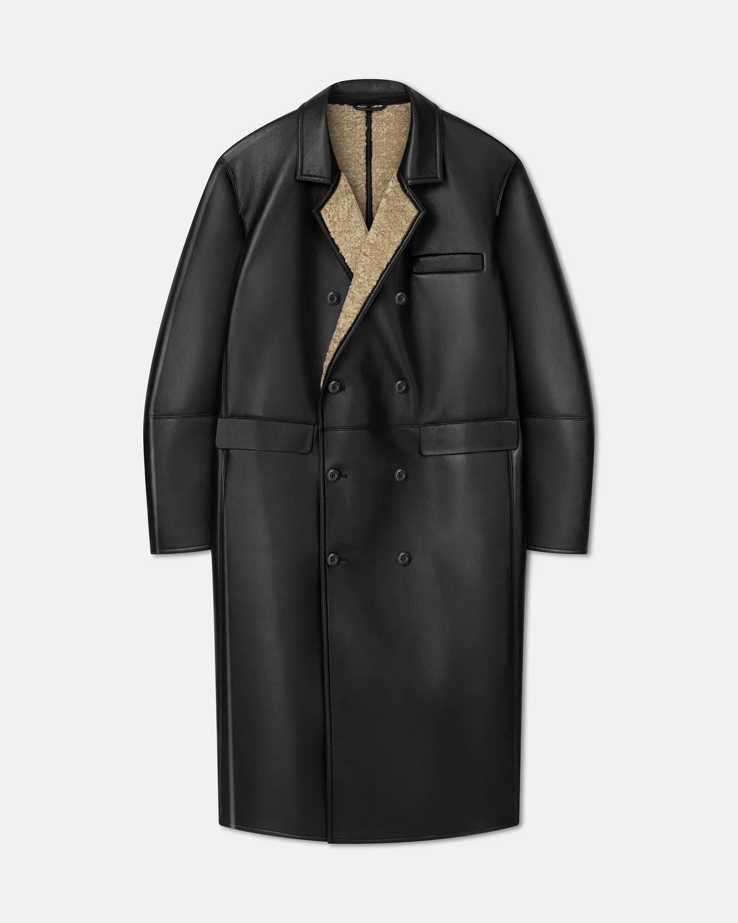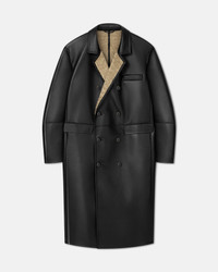 Our design philosophy explores the notion of beautiful, functional garments passed down through generations. Modelled on traditional Hungarian shepherd attire, the Sverre coat is crafted from bonded shearling for an oversized double-breasted silhouette. In a combination of black and cornstalk colors, it has a vintage yet modern feel. Fit Standard fit, matches usual sizing. Model is 189 cm (6'5'') and wears a size M. Materials and Care Shell: Base: 100% Polyester Coating: Polyurethane / 100% Polyester Do not wash, do not bleach, do not tumble dry, do not iron, dry clean any solvent except trichloroethylene handle with care to ensure garment lifespan. repair or resell to support circular fashion.