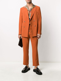cropped track trousers Rust orange stretch wool blend cropped track trousers from Nanushka featuring an elasticated waistband with a drawstring fastening, a button fastening and rear welt pockets. Imported Composition Outer: Polyester 36%, Wool 32%, Viscose 30%, Spandex/Elastane 2% Lining: Viscose 100% SIZE & FIT Model measurements Height 6 ft 1 in(1.85 m) Bust/Chest 37.79 in(96 cm) Hips 37.4 in(95 cm) Waist 30.7 in(78 cm) FittingInformation This piece fits true to size. We recommend you get your regular size Regular fit Made with a mid-weight stretch fabric Washing instructions Dry Clean Only