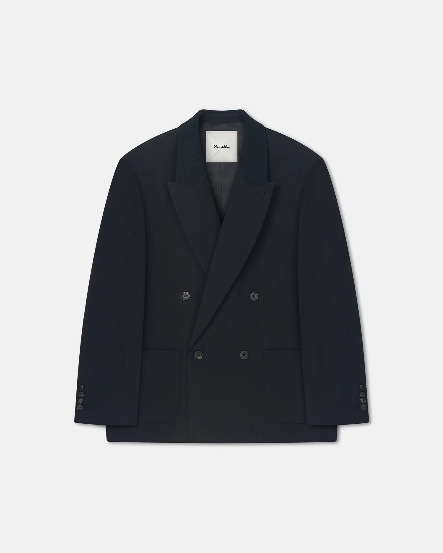 Unexpected fabric combinations are at the heart of our unique approach to tailoring. The Anselm blazer is expertly tailored for a classic double-breasted silhouette from crepe twill and contrasted with a knitted lapel. Fit Intentionally designed for an oversized look. Materials and Care Shell: 79% Lyocell 21% Virgin Wool Lining: 100% Fsc Viscose Detail: Knitted Collar: 52%Viscose 46%Polyamide 2%Elastane Do not wash, do not bleach, do not tumble dry, iron low heat (110°), gentle dry clean any solvent except trichloroethylene Handle with care to ensure garment lifespan. Repair or resell to support circular fashion.