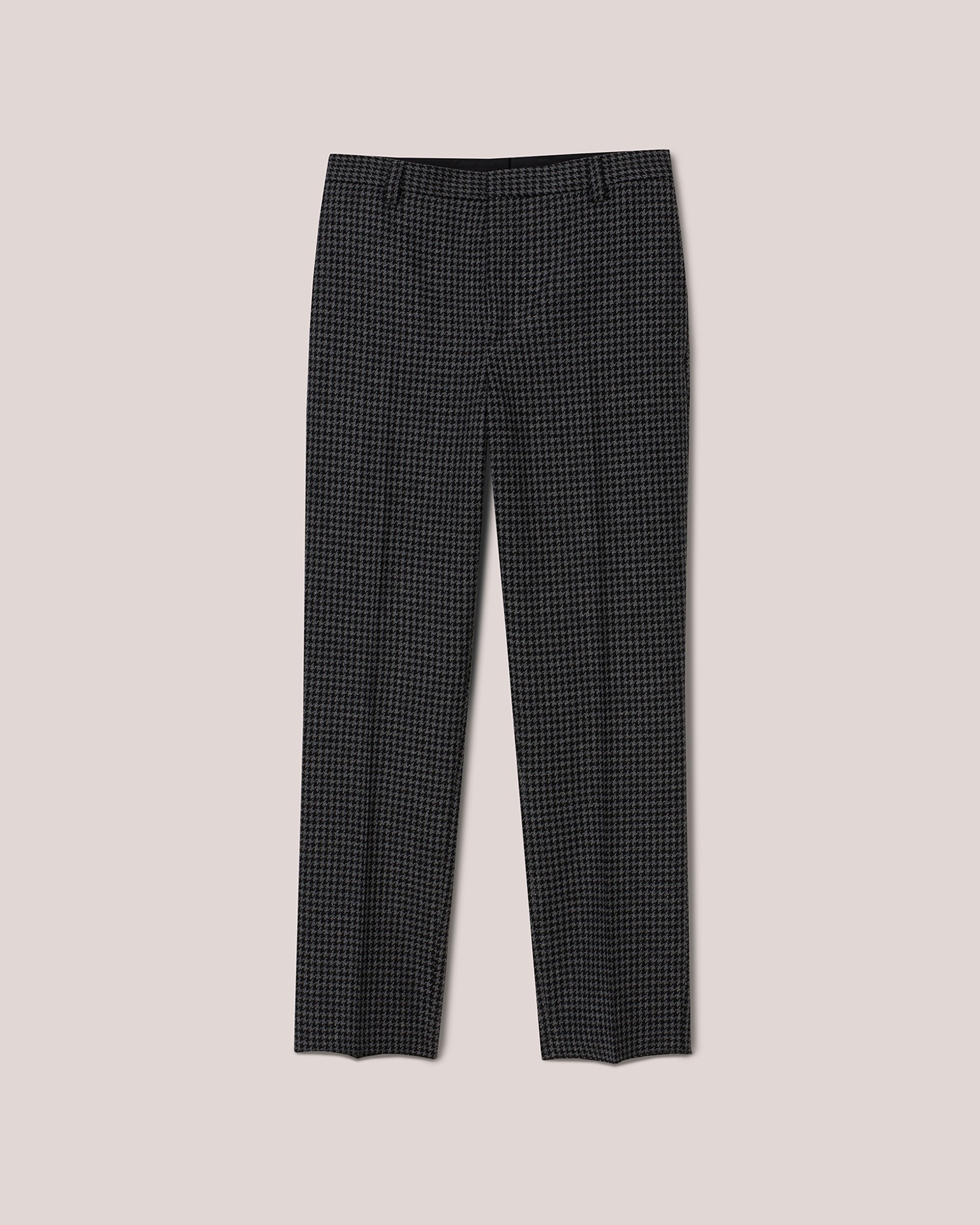 Nanushka’s vision for tailoring is defined by easy elegance. The Jun pants are an embodiment of that. Designed to fall to ankle height, they feature the classic belt-loop waistband and front pleats. Here, they come in houndstooth. This pants style is a perfect match for the Zander jacket in the corresponding colorway. Model is 183 cm (6’0”) tall and wears a size 48. Body 50% Wool; Body 50% Recycled Polyester; Lining 100% Combed Cotton; Trimmings 100% Combed Cotton; Detail 100% Viscose