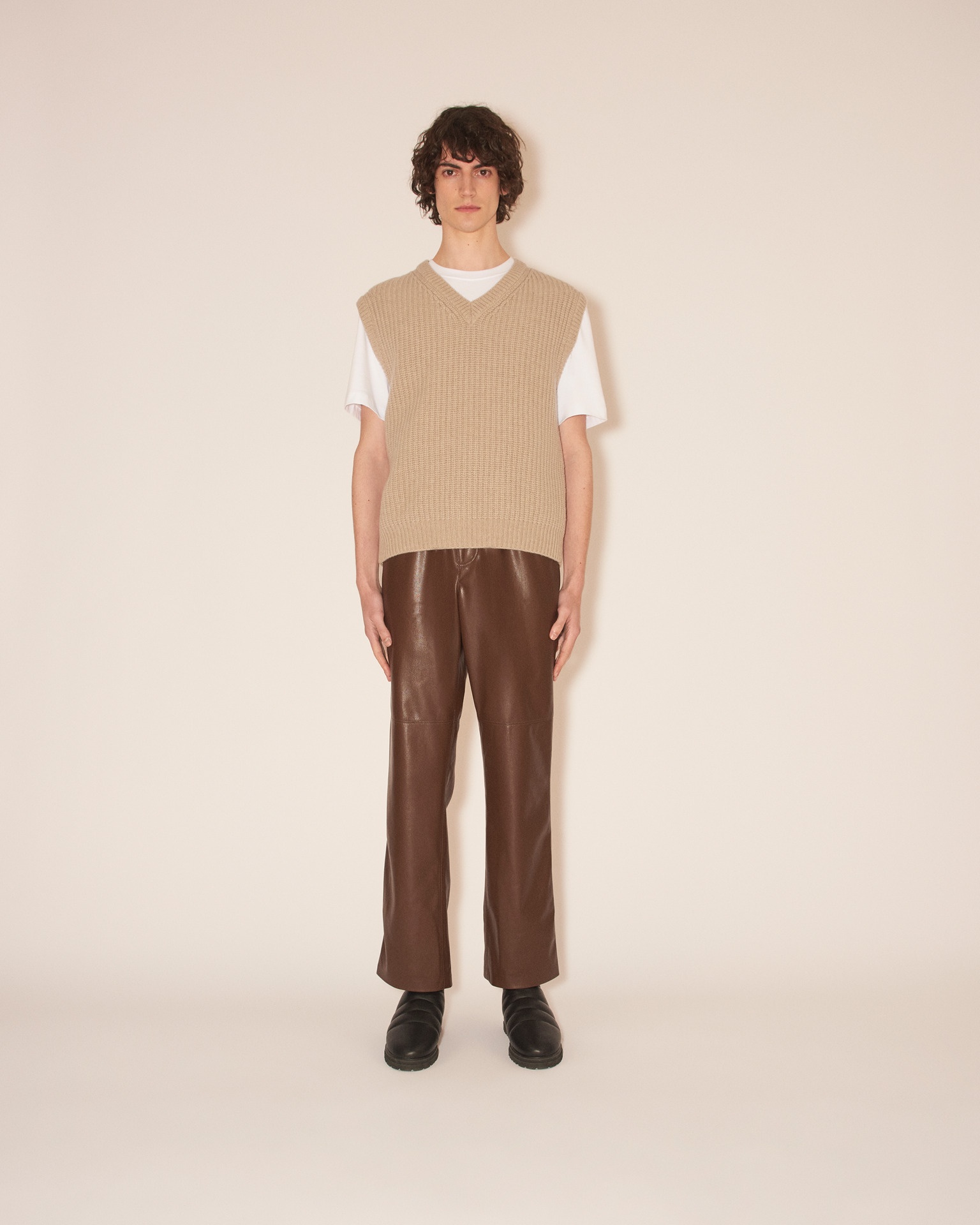 The Malthe sweater vest is spun from super soft cashmere to deliver warmth and comfort where you need it most. The ribbed V-neck adds to its versatility in layering options. Body: 90% MERINO WOOL 10% CASHMERE