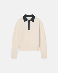 The Gregor sweater encapsulates our unique approach to sports aesthetics. It’s knitted from super soft creme merino wool and contrasted with a black terry polo neck. Fit Standard fit, matches usual sizing. Materials and Care Shell: Shell1 100% Merino Wool Shell2 75% Cotton, 25% Nylon Hand wash cold, do not bleach, do not tumble dry, iron low heat (110°), dry clean any solvent except trichloroethylene, dry flat Handle with care and wash less to ensure garment lifespan. Repair or resell to support circular fashion.