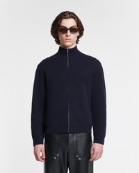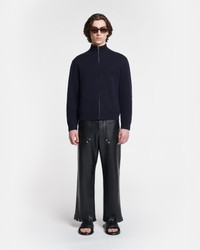 The Poval cardigan is influenced by our Founder and Creative Director’s childhood memories of Budapest sports clubs. Knitted from soft merino wool, it eschews classic buttons in favour of a sleek, sporty zip fastening. The navy hue and streamlined silhouette are timeless. Fit Regular fit, true to size. Zip up cardigan Regular fit Embroidered Nanushka logo on the chest Compact merino material Model is 186 cm (6'1'') and wears a size M. Materials and Care Shell: 100% Merino Wool Machine wash cold (20°), do not bleach, do not tumble dry, iron low heat (110°), dry clean any solvent . handle with care and wash less to ensure garment lifespan. repair or resell to support circular fashion.