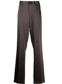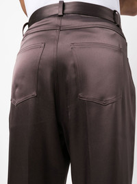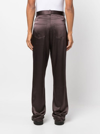 MID-RISE STRAIGHT-LEG TROUSERS FROM NANUSHKA FEATURING COFFEE BROWN, SATIN FINISH, BELT LOOPS, FRONT BUTTON AND ZIP FASTENING, CLASSIC FIVE POCKETS AND STRAIGHT LEG.