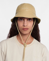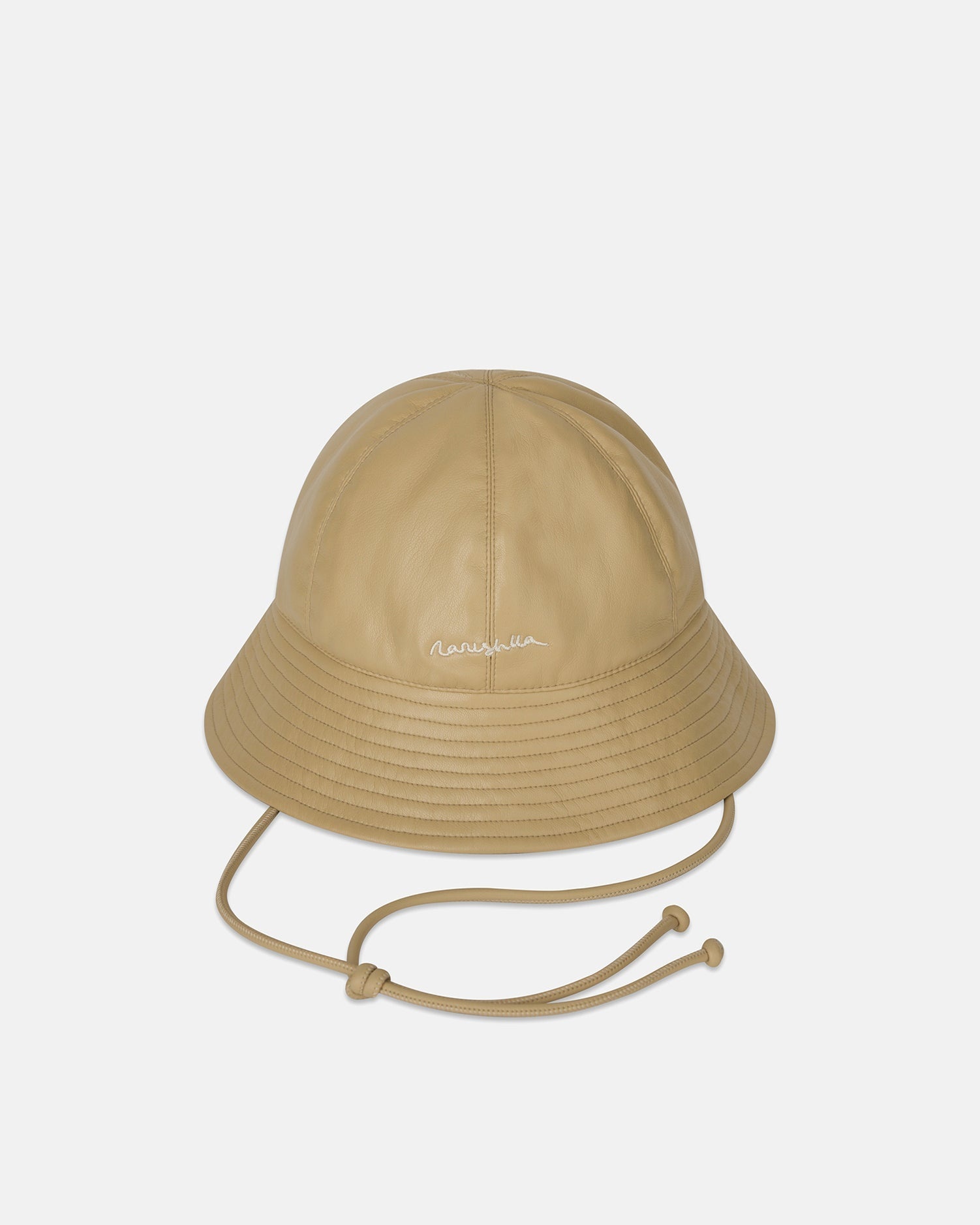 The Laurie hat is made from signature OKOBOR™ alt leather in a light wax toneIt is finished with logo lettering at the front and drawstring ties for a secure fit. Materials and Care Shell: Coating: Polyurethane Base: 100% Polyester Recycled #N/A